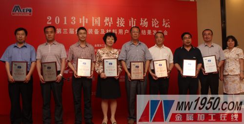 2013年6月17日晚,在“2013中国焊接市场论坛暨第三届焊接装备及材料用户调查结果发布会”晚宴上,金属加工杂志社社长栗延文及中广核苏州热工研究院院长王安分别代表主办方及用户代表致辞。并为“第三届焊接装备及材料用户调查”获奖者颁发了奖品,及为获得“用户满意品牌”的30家企业颁发了奖牌。