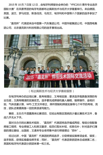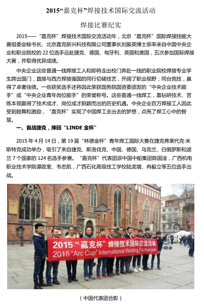 2015“嘉克杯”焊接技术国际交流活动焊接比赛纪实
