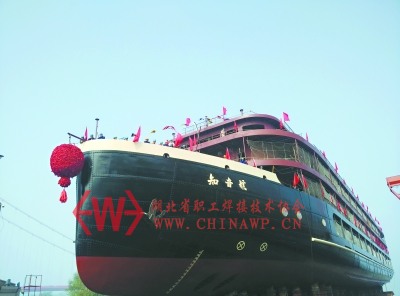 “知音号”游轮在武昌船舶重工集团准备下水 记者王东方 摄