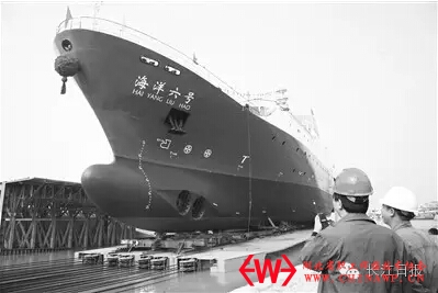 中国第一艘自主研制的天然气水合物综合调查船。 “海洋六号”综合调查船以海底天然气水合物资源调查为主,首次集地震、地质调查等多项调查功能于一体,总造价近4亿元。 “海洋六号”履历表 海洋六号资料图 2005年7月10日,武船与广州海洋地质调查局签订“海洋六号”项目建造合同。
