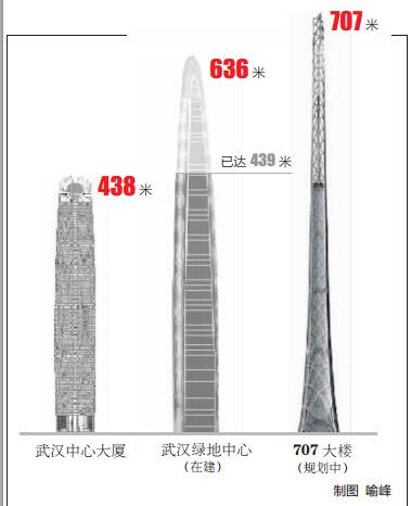 武汉绿地中心大厦工程于2012年4月开工,至今已建设超过4年,预计2018年上半年到达636米的设计高度,整座大厦地上共120层,钢结构总用钢量约8万吨,预计2018年底竣工。