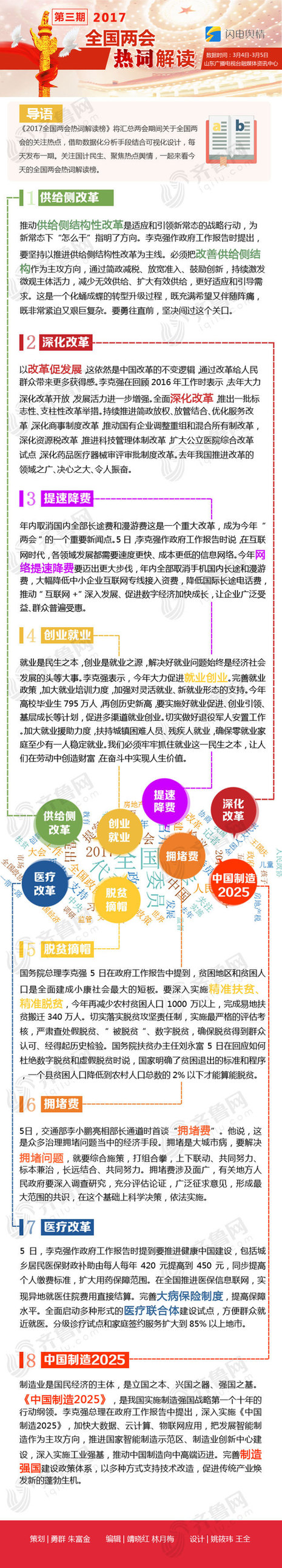 2017年3月3日起,中国进入"两会时间"。一年一度的全国两会是全体中国人政治生活中的一件大事,是一场承载着全民期待的举国盛事,作为外界观察中国政治经济走向的重要窗口,2017年两会将聚焦哪些最新热词?哪些两会话题备受瞩目?关注国计民生、聚焦热点舆情,山东广播电视台融媒体资讯中心利用闪电舆情平台推出2017全国两会每日热词解读。“中国制造2025”、“脱贫摘帽”、“创业就业”等成为3月5日网民关注的热词。![]() |
