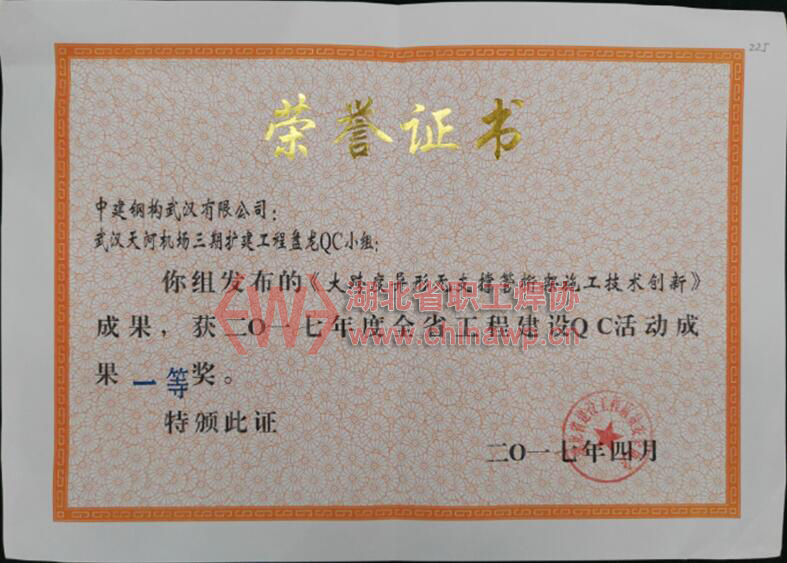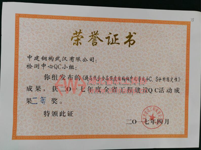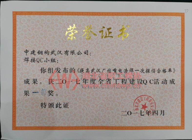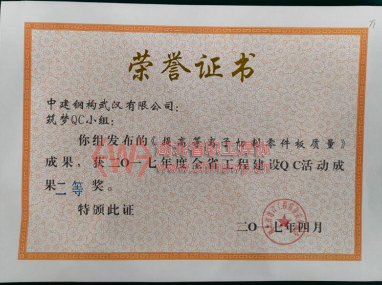 4月25日~4月26日,来自全省321个QC课题代表参加了湖北省建设工程质量安全协会举办的2017年湖北省工程建设QC成果交流发布会,经过激烈角逐、奋勇比拼,中建钢构华中大区选送的6个QC成果分别荣获一等奖和二等奖。斩获多个奖项,标志着中建钢构华中大区在2017开年之际质量管理工作又迈上了一个新的步伐,再刷华中大区QC质量管理新高度。
