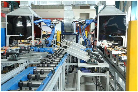 该机器人自动化生产线集成了国际众多知名品牌的明星产品,例如安川机器人、SMC气缸、康耐视视觉检测系统、美国垂恩空气净化系统、西门子控制系统等。项目的整体难度在于来料尺寸公差范围大,产品规格变化多样,该线的主要特点是自动化程度高,生产速度快,系统自适应能力强能够适应多种产品规格的切换。