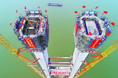 据悉,主塔是负责承重的部分,两座主塔封顶后,大桥将进入上部结构施工。下一步,将进行先导索过江,架设牵引系统,安装猫道、主缆、吊索等,预计明年“五一”开始主缆架设,明年“十一”进入架梁施工。目前大桥钢桁梁已经开始工厂化预制。武昌岸引桥也正在加紧上部结构施工。