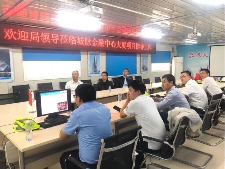 顶模安装过程中,局副总工程师、工程研究院院党委书记/院长王辉带领研究院领导班子成员赴城脉项目现场调研安装情况,听取项目关于顶模安装总体部署、平面堆场、资源投入、安装工期的情况汇报和建议反馈。