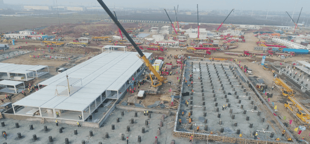 ![]() 2月4日上午11点,迅速集结50名管理人员,230余名工友,完成现场勘查、调整方案、设施腾退、场地消杀、物资进场等工作;2月5日凌晨3点,1000张病床及配套水电全部就位。目前,正在加速推进床位隔断安装工作。(张翠)