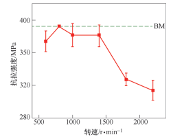 图13 接头抗拉强度与转速关系
