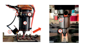 (1)机头的设计与制造机头的设计。即主轴系统的结构设计。系统包括高速电主轴、压力传感器、激光跟踪器、冷却系统、搅拌头和刀柄、转接盘等连接配件。其实物如图12所示。