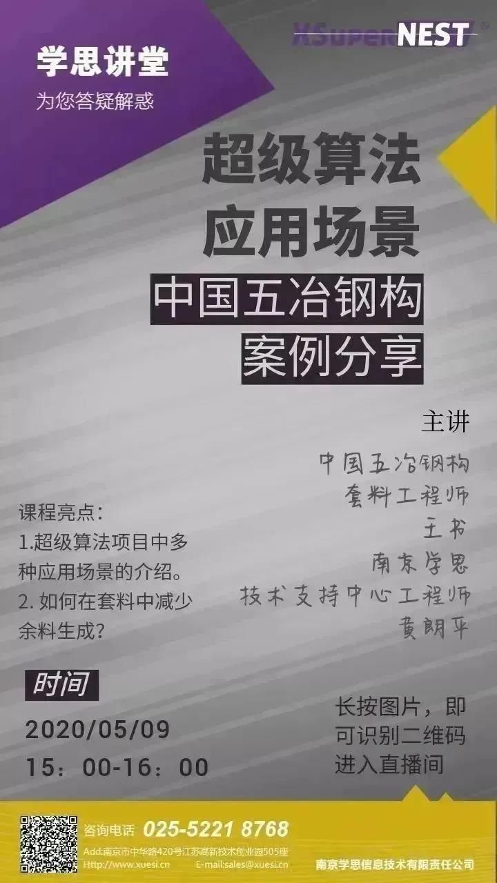 5月9日,南京学思再次推出新的分享课程。这次是中国五冶钢构的王书工程师,为大家带来的关于套料软件的看法与见解。