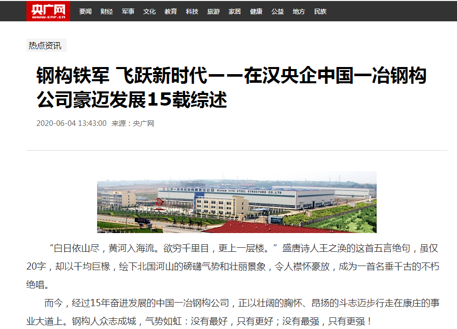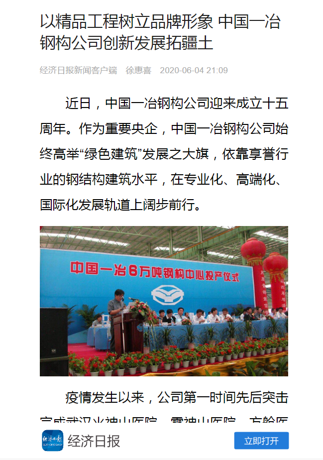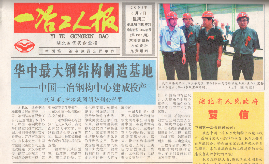 多家媒体聚焦中国一冶钢构公司成立15周年