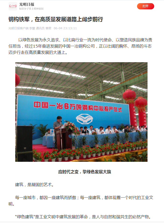 中国一冶钢构公司始终高举“绿色建筑”发展大旗