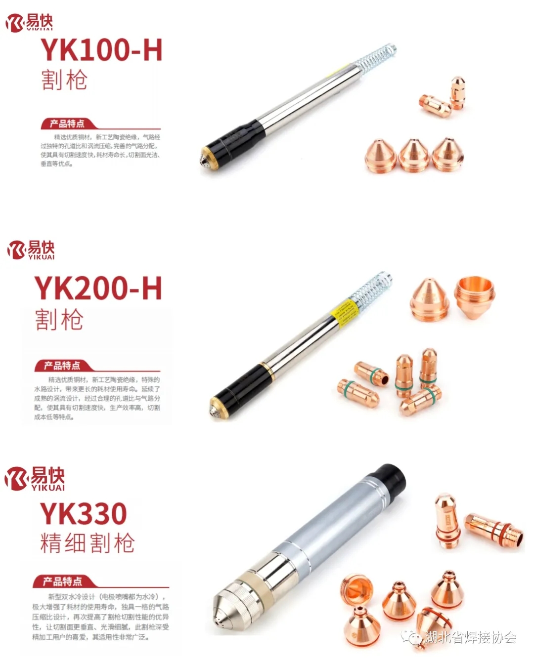 2015年在公司总经理吴文韫、技术部长张训雷的带领下,自主研发的“易快”品牌专用等离子割炬,在不断实践应用中转型升级,性能更优,效率更高。第一代产品YK-125、YK-200正式推向市场,好评如潮。随后陆续研发成功的易快割枪第二代产品YK100-H、YK200-H、YK300-H,及第三代产品YK-330、YK-130、YK-300精细割枪,也已全面投放市场。