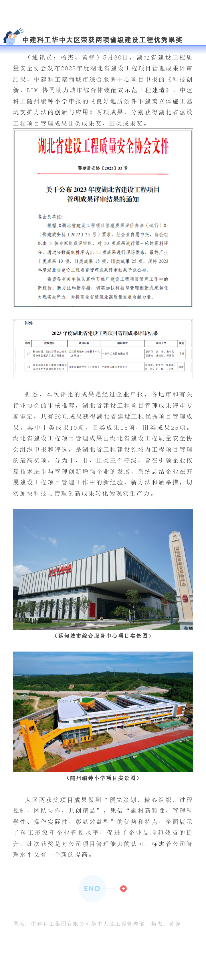 中建科工华中大区荣获两项省级建设工程优秀项目管理成果奖