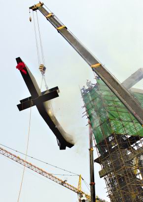 8月31日上午,随着最后一榀V形对称大跨度悬挑钢桁架吊装合龙焊接成功,由武汉建工股份有限公司钢结构公司建造的辛亥革命博物馆钢结构工程历时4个多月实现结构封顶,标志着这一有特殊纪念意义的工程最关键的钢结构施工战役完成,为整个工程的进度奠定基础。