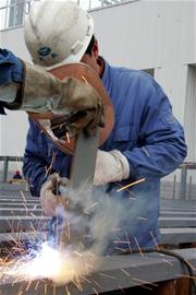 焊工这个行当,不少年轻人有些忌讳。这是个特种行业,有弧光,会产生辐射和烟尘,夏天也要穿两套衣服。而焊接时,常常需要拿着三四斤重的焊枪,连续干8小时,蹲、站、蜷、仰,不停变换角度。姜师傅说,按规定操作、注意颈椎和腰椎在劳动间隙时的锻炼,身体就不会有太大损伤。