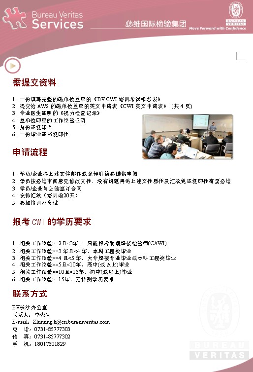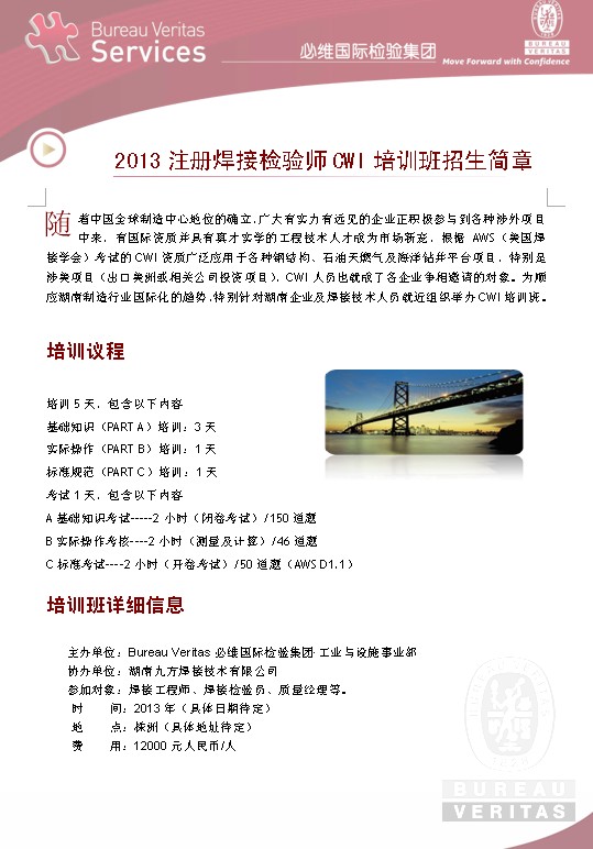 2013注册焊接检验师CWI培训班招生简章