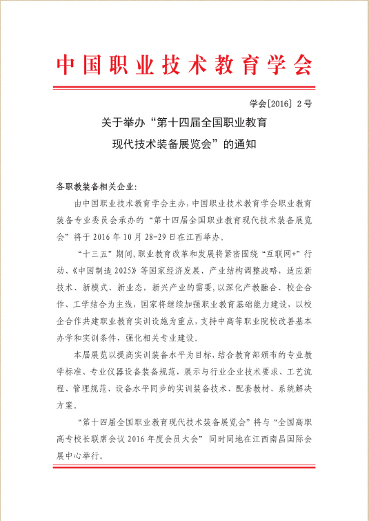 关于举办“第十四届全国职业教育现代技术装备展览会”通知