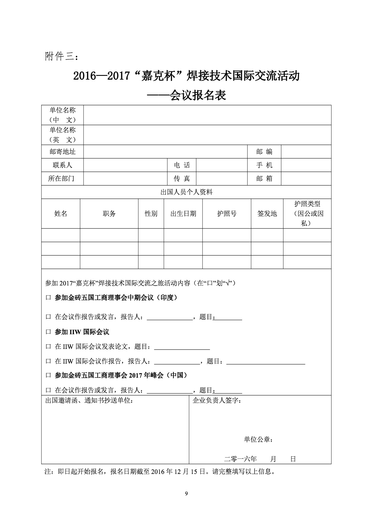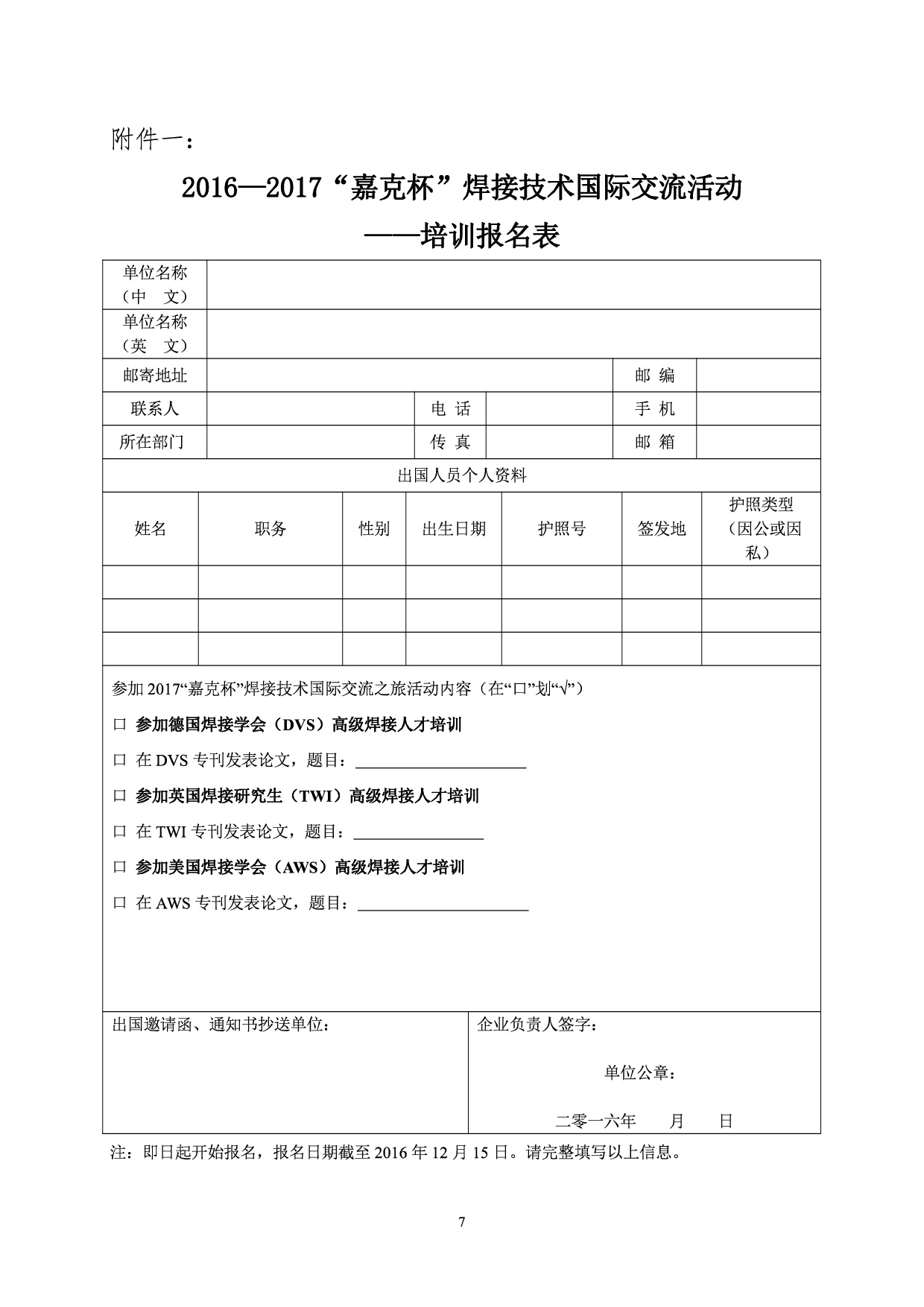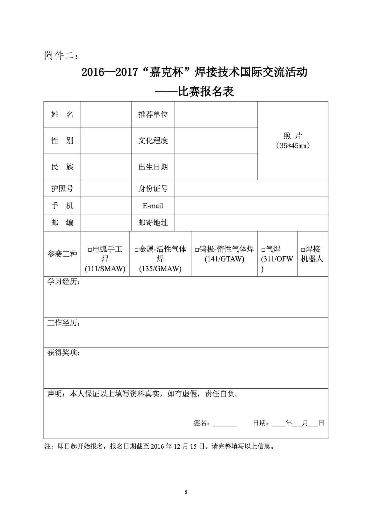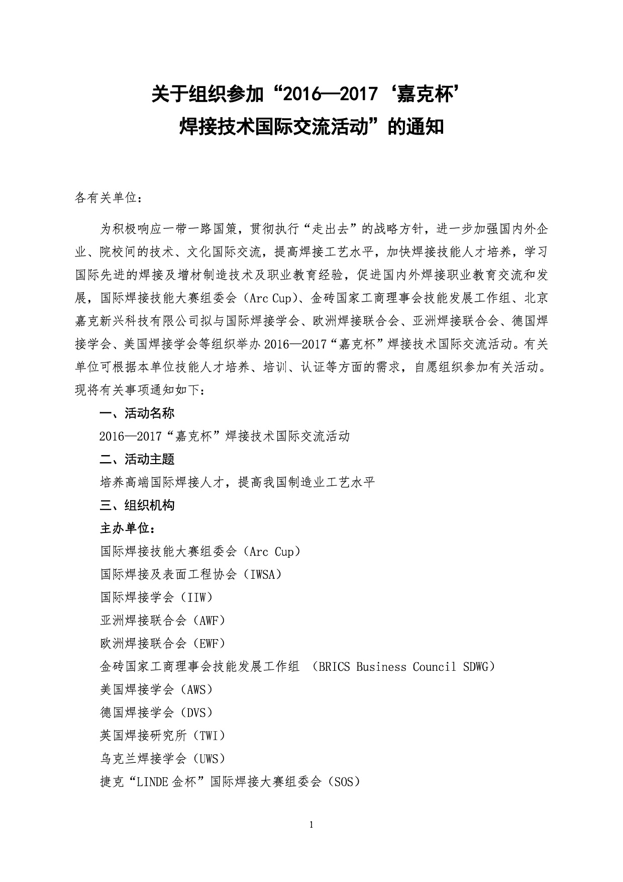 关于组织参加2016-2017 “嘉克杯”焊接技术国际交流活动的通知