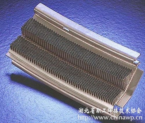 金属蜂窝壁板结构具有重量轻,比强度、比刚度高,耐高温、耐腐蚀,消音、隔热等优异性能,在航空航天领域得到广泛应用,如飞机机身、机翼、发动机舱门、发动机短舱等。近年来中航工业制造所研究出钛合金、不锈钢、高温合金等柔性蜂窝芯体精密加工技术,大面积变截面、变曲率蜂窝壁板结构高焊合率钎焊与无损检测等新技术,使柔性蜂窝芯加工精度达到0.05mm以内、蜂窝壁板结构钎焊焊合率达到90%以上,并研制出飞机前机身口盖、后机身侧壁板、起动机进气道等蜂窝壁板结构部件,在不同型号飞行器上成功应用,同时为高速飞行器防隔热轻质、高温结构研制奠定了技术基础。