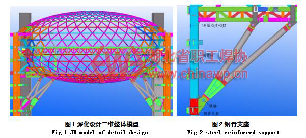 (2)对此类异形复杂构件的拼装采用了节点拼装模拟技术,顺利实现了每个零件的拼装和每条焊缝的焊接,如图 5所示。