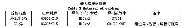 由于本工程超厚板的焊接坡口约为35度,因此,焊缝间隙较大,从而,多层多道焊是超厚板必须使用的焊接技术。本工程多层多道焊采用的焊接设备为CO2气体保护焊,线能量小,对母材的性能影响不大,且可以改善焊接接头的性能。更为有利的是前一焊道是后一焊道来说是一个预热的过程;后一焊道对前一焊道及其热影响区进行再加热,使加热区组织和性能发生相变重结晶,形成细小的等轴晶,相当于一次正火处理,改善了材料的塑性和韧性。在焊接过程中,严禁用摆宽道来替代多层多道焊,否则焊接接头的拘束应力大,,易引起冷裂纹的产生。应尽量连续施焊,控制到道间温度,及时清理道间焊渣及表面飞溅。当有中断施焊的情况,应先测量道间温度,当温度低于初始预热温度时,应先用火焰加热法重新预热,才能再继续焊接。