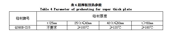 本工程涉及的厚板为60mm、80mm、130mm,钢材牌号均为Q390B-Z15,预热是此类厚板须采取的工艺措施。根据《钢结构焊接规范》(GB50661-2011)的表4.0.5和表7.6.2可知,钢材类别均为Ⅲ类,60mm<t≤80mm时,最低预热温度为100℃,t>80mm时,最低预热温度为120℃。在实践经验中发现,对如此厚板和材质的钢材进行预热,为了焊接接头达到塑性好、无裂纹的效果,要提高预热温度,有效降低焊接接头的淬硬倾向和裂纹倾向。母材的最小预热温度应按表 4要求执行。
