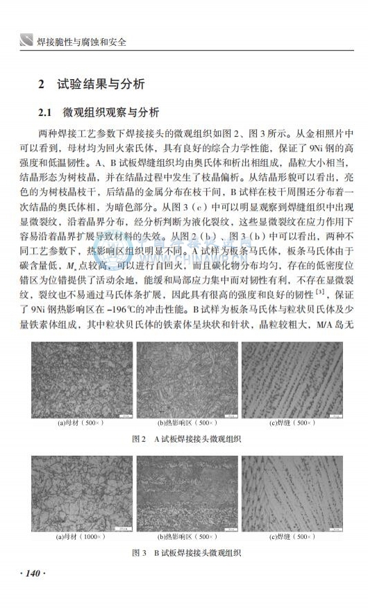 焊接工艺参数对9Ni钢焊接接头组织及弯曲性能的影响