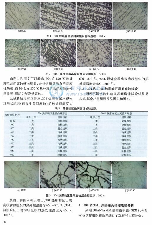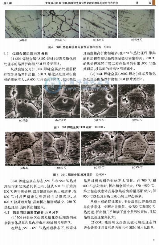 304和304L焊接接头敏化热处理后的晶间析出行为研究